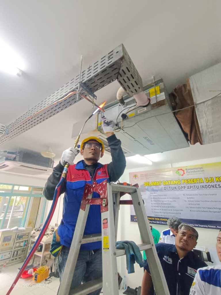 - Uji teori, untuk mengukur pemahaman peserta terhadap standar kerja, prosedur operasional, serta prinsip dasar sistem pendingin dan tata udara.